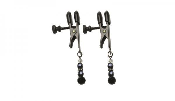 Slim, sleek, and lovely! Black Beaded Nipple Clamps adorn the body while creating pleasurable sensations without the weight of heavier clamps. They are adjustable to allow you the choice of light pressure of full-strength intensity and feature rubber tips for a comfortable and confident grip.